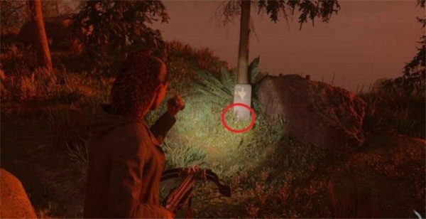 2、然后玩家从南门离开养老院的时候沿着小路往东走,会在一块石头后面发现藏匿物。