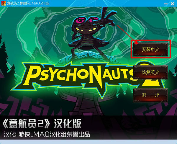 意航员2是一款剧情丰富的动作冒险类游戏,该游戏完美的将危险、刺激和幽默的等元素相融合,使得玩家可以欣赏到电影风格的画面和使用许许多多不同的超能力。当然在游戏中玩家可以探索神奇的脑内世界,体验充满幽默和阴谋的故事,也可以在戏剧性和危险性并存的冒险中,利用角色的超级能力消灭所有阻碍你的敌人。但由于该游戏默认语言不支持中文语言,这就导致了许多玩家的游戏体验性不是很好,因此小编为大家带来了意航员2汉化补丁,该补丁是游侠汉化组专门针对该游戏所制作的补丁,且该汉化补丁的使用方法也非常的简单,玩家只需打开补丁文件点击安装,然后重新启动游戏语言即可转化为中文,十分的快速便捷,当然最为重要的便是通过它玩家们可将游戏的主菜单、游戏设置页面、剧情页面等多处进行全面的汉化,从而大幅度提高游戏体验性。还在等什么呢,有需要的玩家欢迎前来下载使用哦。