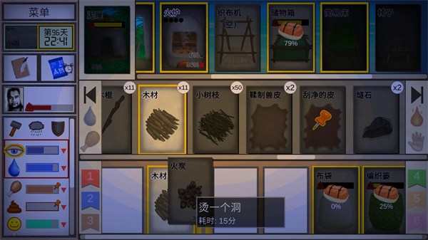 制作需要2小时的鬼神斧头,制作泥屋需要5根原木会消耗你海量斧头。