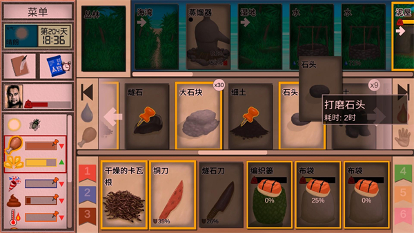 两颗小石头也研磨,但需要两个小时,新手很容易拉动物品时犹豫不决点到研磨,简直是手残党悲剧。