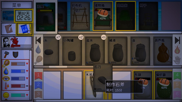 玩家最基础的工具,把小石头拉到大颗石头打磨,制作需要一个小时。
