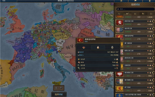 在国家界面,点击右上方小旗子,玩家可以看到官方推荐的国家。