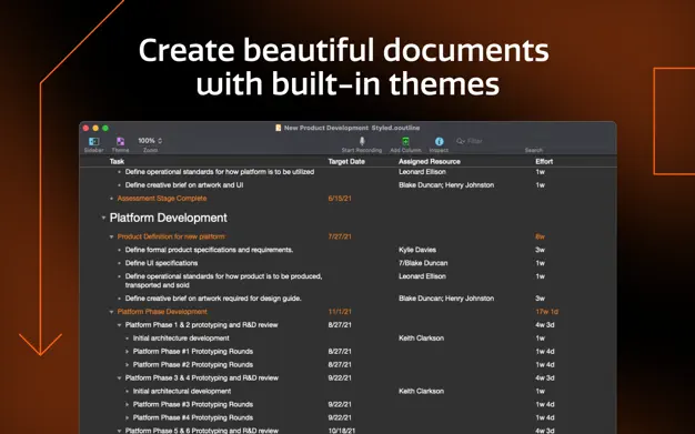 5、样式,OmniOutliner 5 Pro Mac版专门应您一切所需提供丰富的样式系统,帮助制作动态格式(从逐个字词到整个文稿),在一处进行的修改会自动更新到所有地方