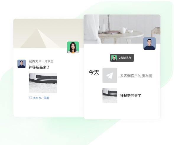 可将活动信息、产品动态、专业知识等内容发表到客户的微信朋友圈,并与客户评论互动。