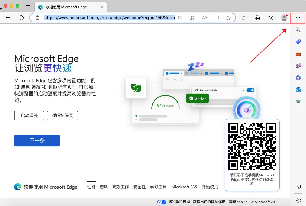 1、在本站下载Microsoft Edge浏览器后,打开软件后,点击右上角的“...”图标。