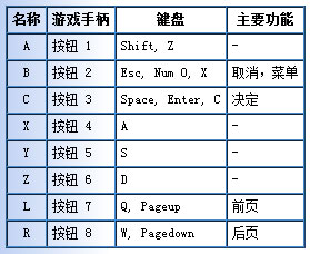 各个按钮(A,B,C,X,Y,Z,L,R)对应的键盘和具体功能如下所示。游戏手柄的 A,B,C 等 按钮也是如此对应,所以使用起来会更加容易。