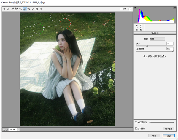 4、在图片上选择污点区域,软件会自动帮助您去除。