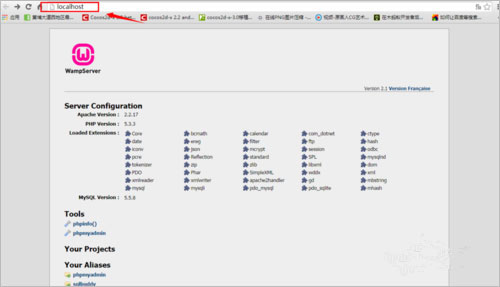 1、先来查看一下wamp是否启动成功,打开浏览器,在地址栏输入localhost,如图说明成功;