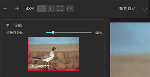 4、“导航器”显示你正在处理的完整图像,在预览面板中的区域以红色框出。单击并拖动红色框可将图像平移到其他区域。