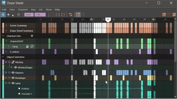 Dope Sheet 经过重新设计,以一种快速、直观的方式来理解、操作和调整动画时序。
