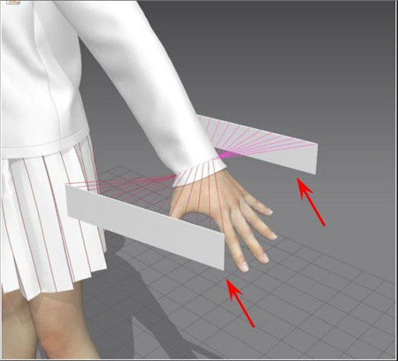 6、使用编辑工具,对板片进行造型调整,并进行复制,摆放到角色后方