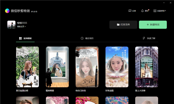 微信秒剪特效是秒剪官方面向所有用户开放的制作拍摄特效模板的工具平台,特效创作者可以用该工具制作拍摄特效模板,特效模板审核通过后将展示在视频号个人主页的「模板」Tab下,视频号用户将有机会使用你创作的特效发布视频。