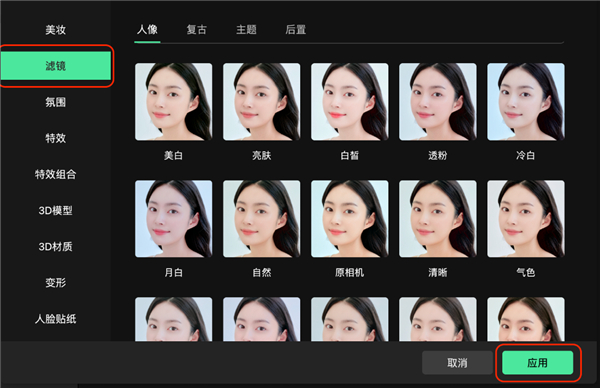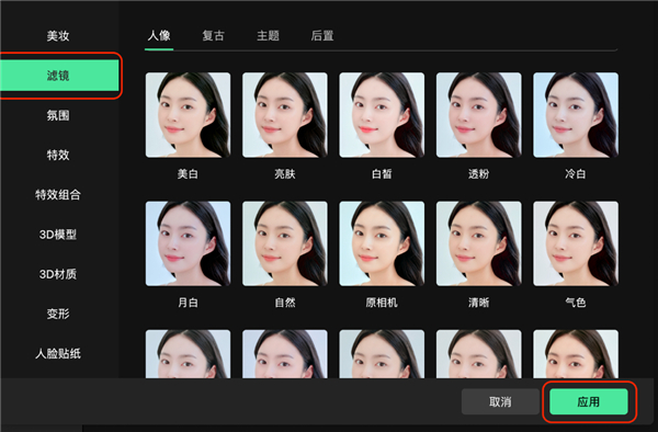 方案2:选择特效库,在「滤镜」中添加/替换相应素材