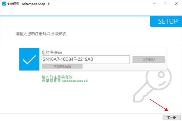 4、将注册码输入到箭头所指,而后点击立即激活;