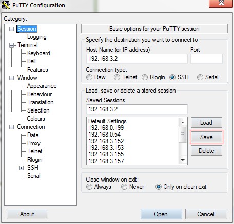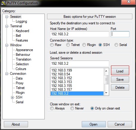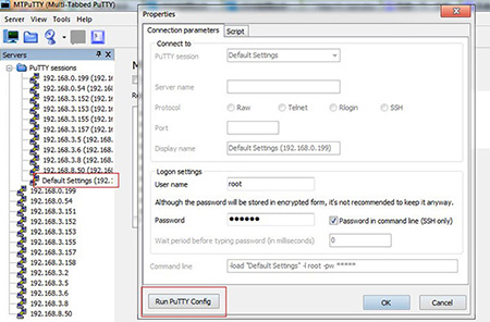 3、MTPutty 保存设置,先load你指定的ip。