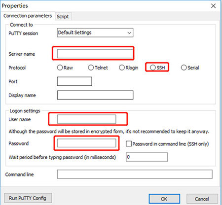 支持所有PuTTY协议 - SSH,Telnet,Rlogin,Raw。 支持PuTTY会话。 您可以控制和更改PuTTY命令行参数。 您可以从程序中运行PuTTY配置。