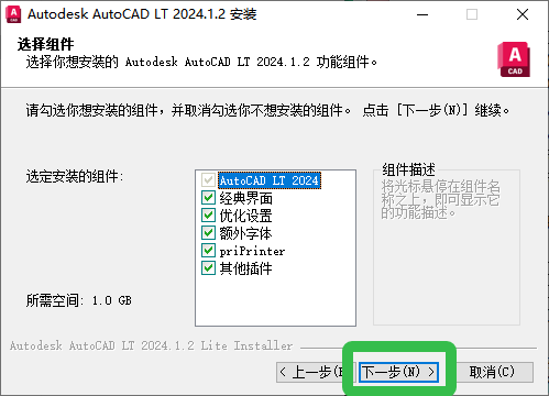 5、勾选安装组件,点击【下一步】。