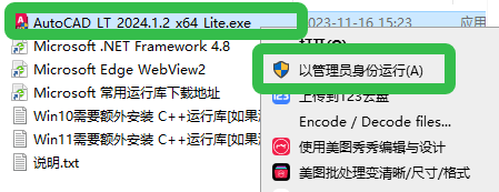 2、点击【AutoCAD_LT_2024.1.2_x64_Lite.exe】以管理员身份运行。