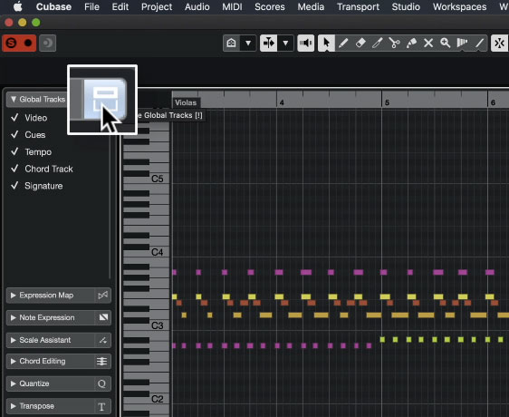 Global Tracks功能非常有利于音乐创作和影视配乐,能让你在钢琴卷帘窗界面即可获取完整的音乐构架信息,而无需反复开关窗口,节省大量时间,大大保留了你的创作灵感。