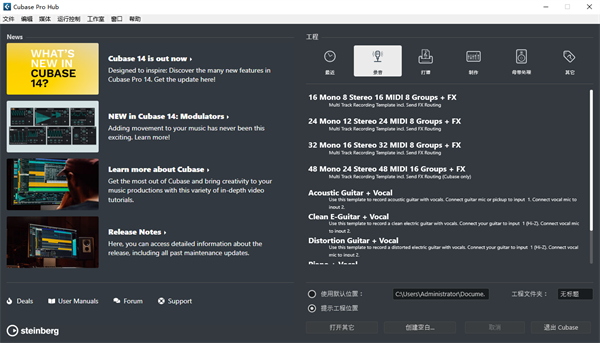 12、回到桌面双击Cubase 13图标进行启动,进入软件后如下图所示,你可以免费使用软件所有功能了。