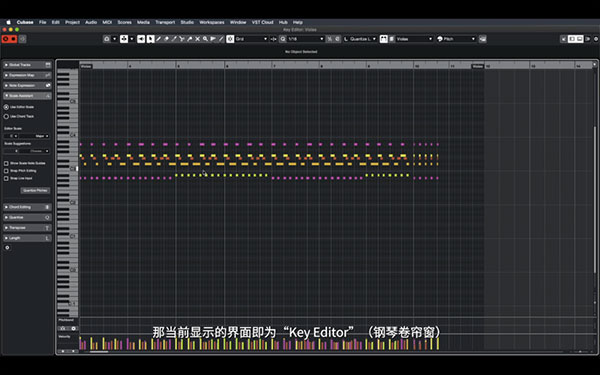 不管是创作何种风格的音乐,歌曲速度和标记变化的实时同步都非常重要,Cubase 11优化了此功能,让你用起来更便捷。可以在Key Editor钢琴卷帘窗中打开Global Tracks全局轨道,你可以在进行MIDI录入和编辑的时候,实时查看音乐整体架构信息。