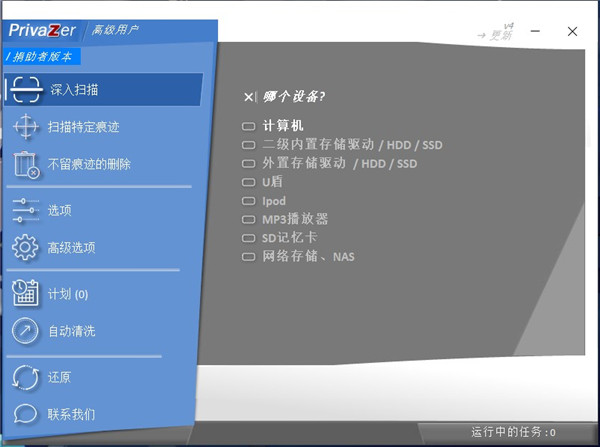 1、支持计算机硬盘、内置存储器、外置存储器、U盘、iPod、MP3播放器、SD记忆卡、网络存储、NAS等多种设备的痕迹清理。