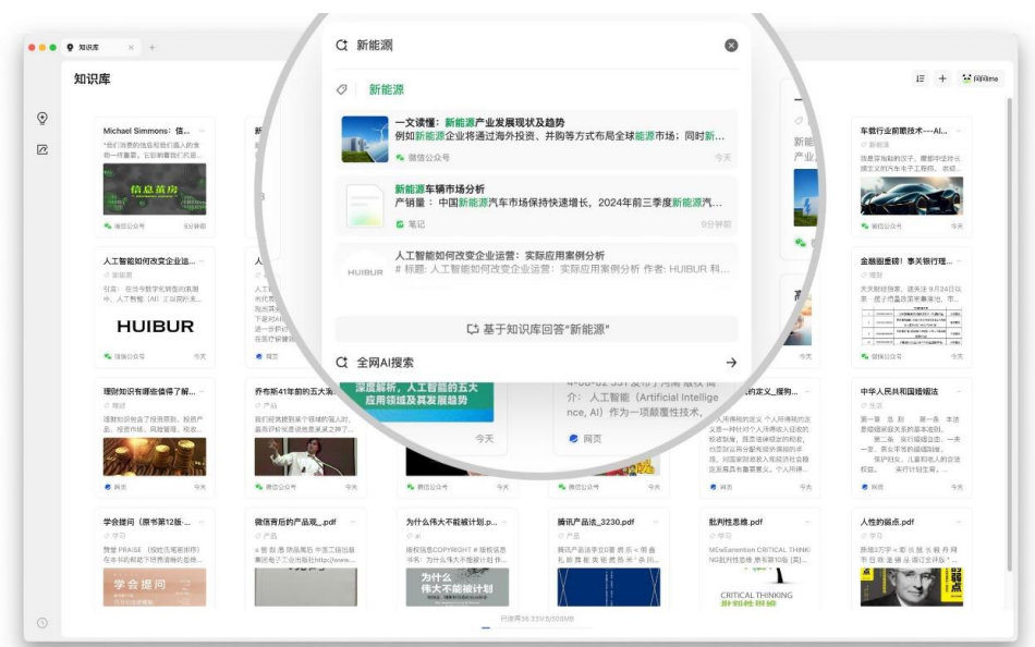 ②在知识库搜索框输入关键词,即可回溯找寻知识灵感