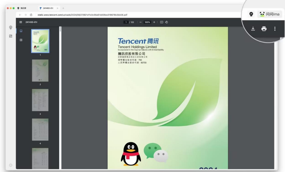 ①点击右上角问问ima,即可打开侧边栏针对文档内容提问