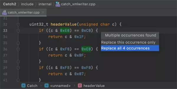 重命名符号,内联函数、变量或宏,在层次结构中移动成员,更改函数签名,以及提取函数、变量、参数或 typedef。 无论您使用哪种自动重构,都请放心,CLion 能够安全地在整个代码中传播相关更改。
