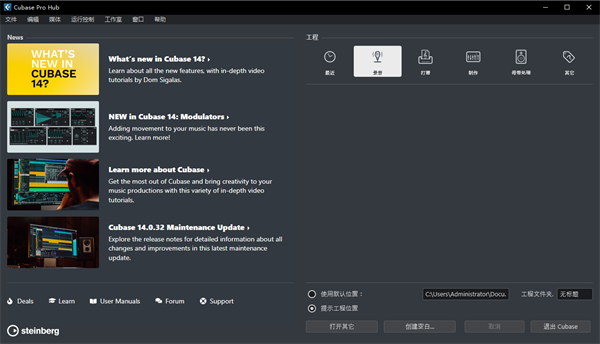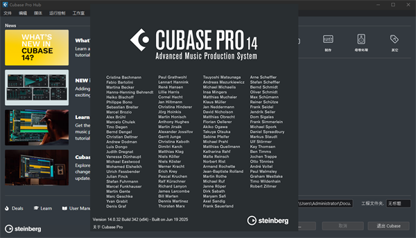10、随后在桌面找到Cubase pro14图标,启动软件,如下图所示,可以发现软件解锁了所有功能,无需付费,亲测有效。