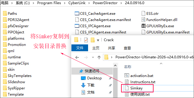 5、打开crack文件夹,先将Simkey复制到安装目录下替换;