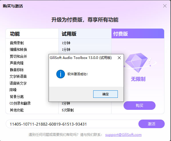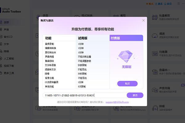4、打开Audio Toolbox,第一次将弹出注册提示,输入下面的激活码:11405-10711-21882-60819-61513-93431