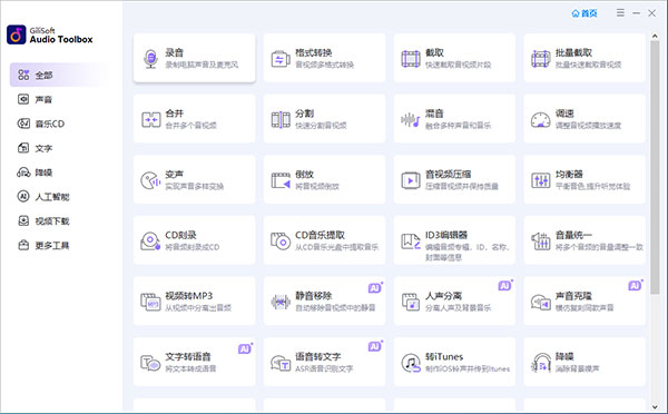 GiliSoft Audio Toolbox Suite是一款功能十分齐全的音频编辑软件。该款软件在功能上就为用户们提供了录音机,音频切割器,音频转换器,音频编辑等等非常便捷的功能服务。